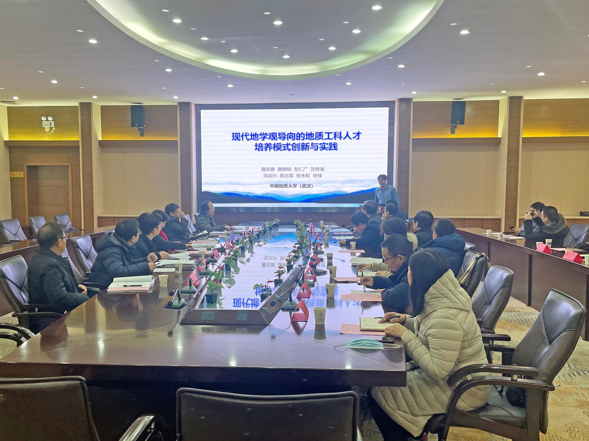 鉴定委员会专家就现代地学观导向、培养人才任务完成情况、“新工科”建设为引领的内容、研究创新性及代表性成果等内容与项目组进行了详细的讨论,提出了意见和建议。鉴定委员会一致认为该成果紧密结合学科国际前沿、行业转型发展及人才需求,形成了地质类专业人才培养新模式,建立了3项国家教学质量标准,在全国地质类专业中得到广泛推广应用,学生综合素质与社会竞争力显著提升,起到了重要示范和引领作用,并认为该成果属国内首创,达到国际先进水平,一致同意推荐申报湖北省教学成果奖。