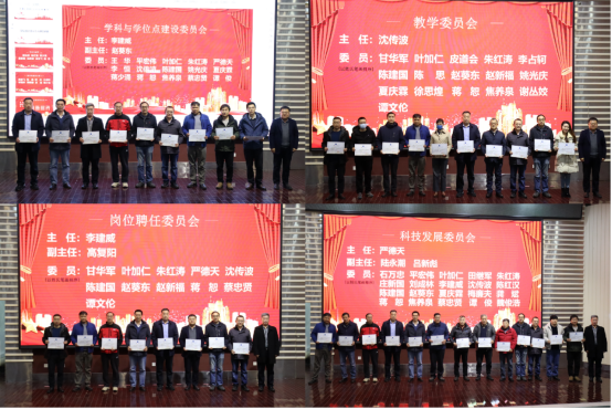 大会举行聘任仪式。学院2022年底对学科与学位点建设委员会、教学委员会、岗聘委员会进行了换届;同时,根据工作需要增设了科技发展委员会。会上,向各委员会新一届委员颁发了聘书。