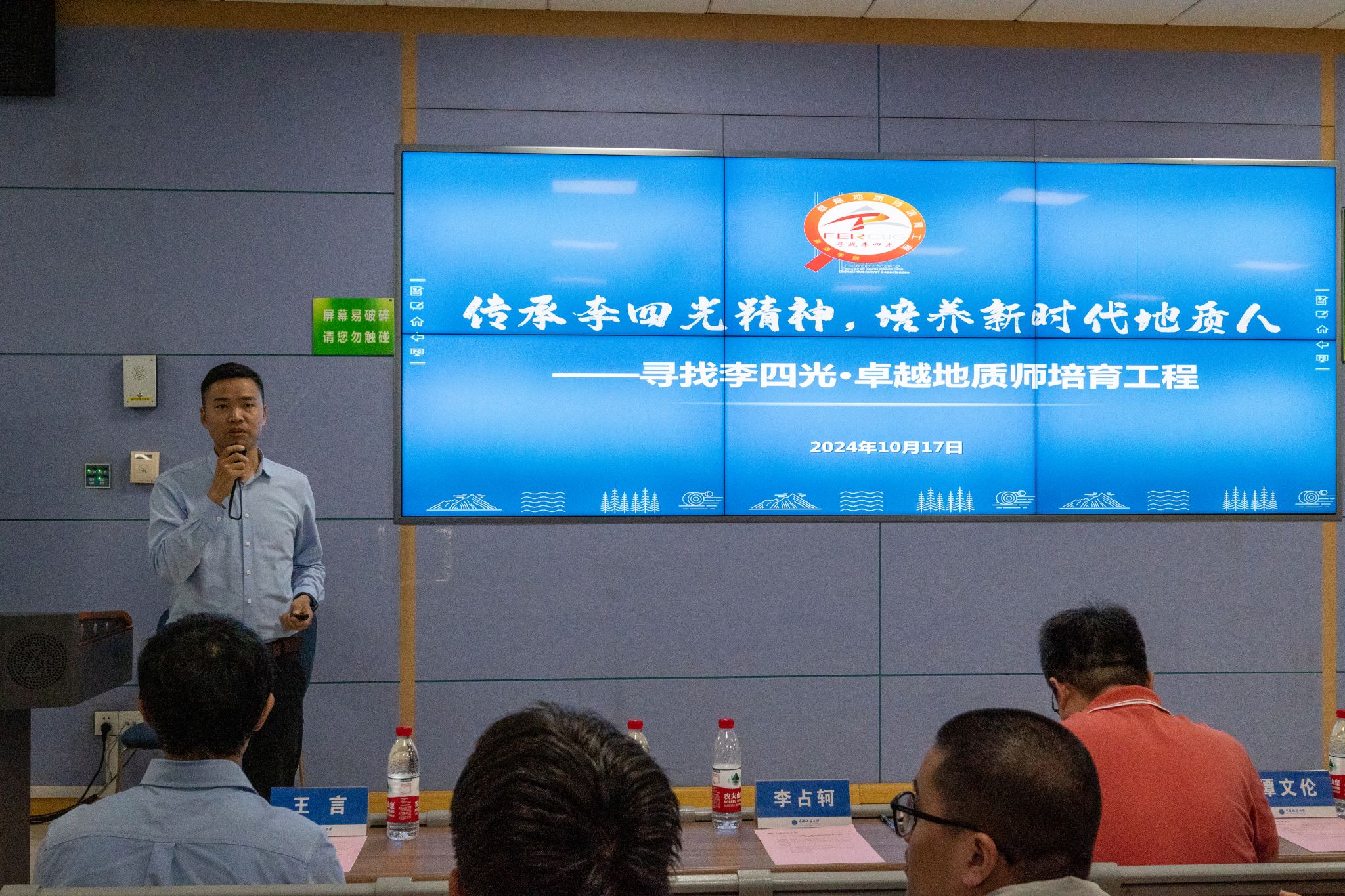 李占轲以《传承李四光精神,培养新时代地质人》为题,从活动目的及背景、活动简介、活动成效以及创新发展等方面介绍“培育工程”实施情况。他谈到,“培育工程”旨在面向国家需求,弘扬李四光精神,强化专业兴趣,训练专业技能,提升综合素质,培养科研思维,激发报国志向,涵养科学精神,培养新时代地质人。他指出,“培育工程”自2011年启动实施以来,坚持守正创新,赛事体系不断完善,赛事成效日益凸显,形成了五位一体的育人品牌,形成了“专创教育”相融合的工作体系,有力促进了学院的教育教学、人才培养高质量发展,完善了“三全育人”工作体系,收获了特色育人成果。