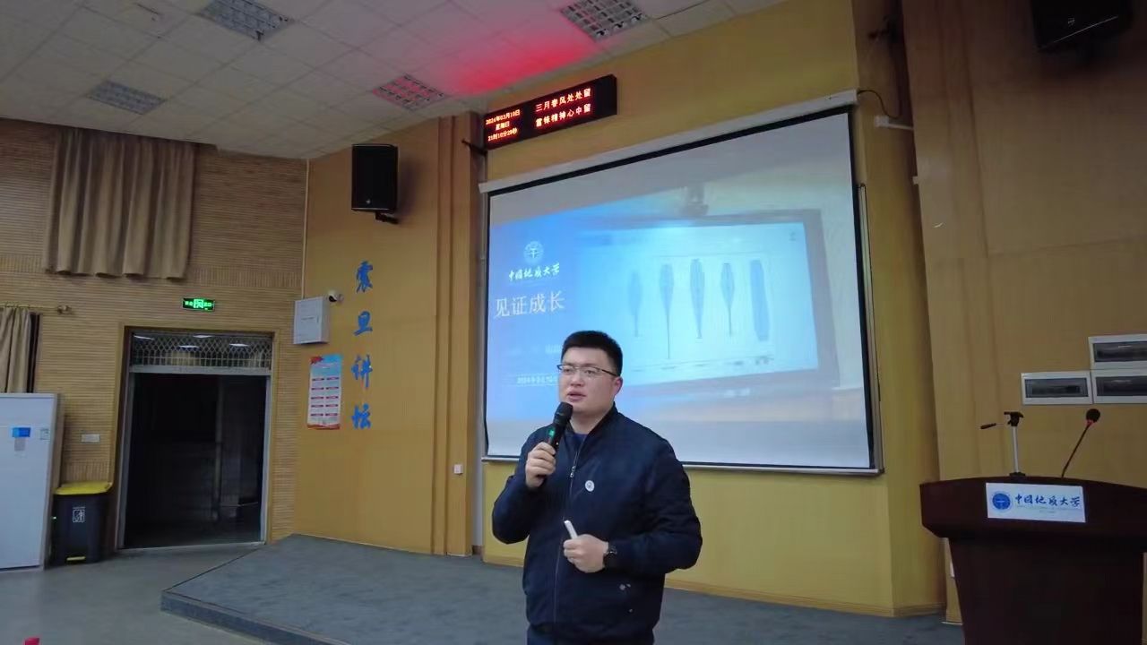 陈嘉好从三个学期成绩对比分析、各班成绩对比分析、学风建设情况、总结与建议四个方面对22级各班成绩和学风问题进行深入分析与总结,让同学们对当前的学习情况有了清晰的定位和目标,并劝诫大一学生警惕“大一下现象”,保持良好的学习态度和习惯,多渠道提升自身综合素质。