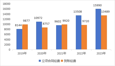 近五年科研立项合同经费、到位经费情况
