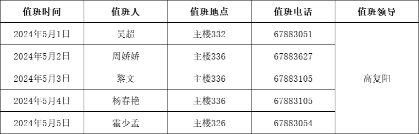 附件1:国产精品久久久久久久久久2024年“五一”假期值班表