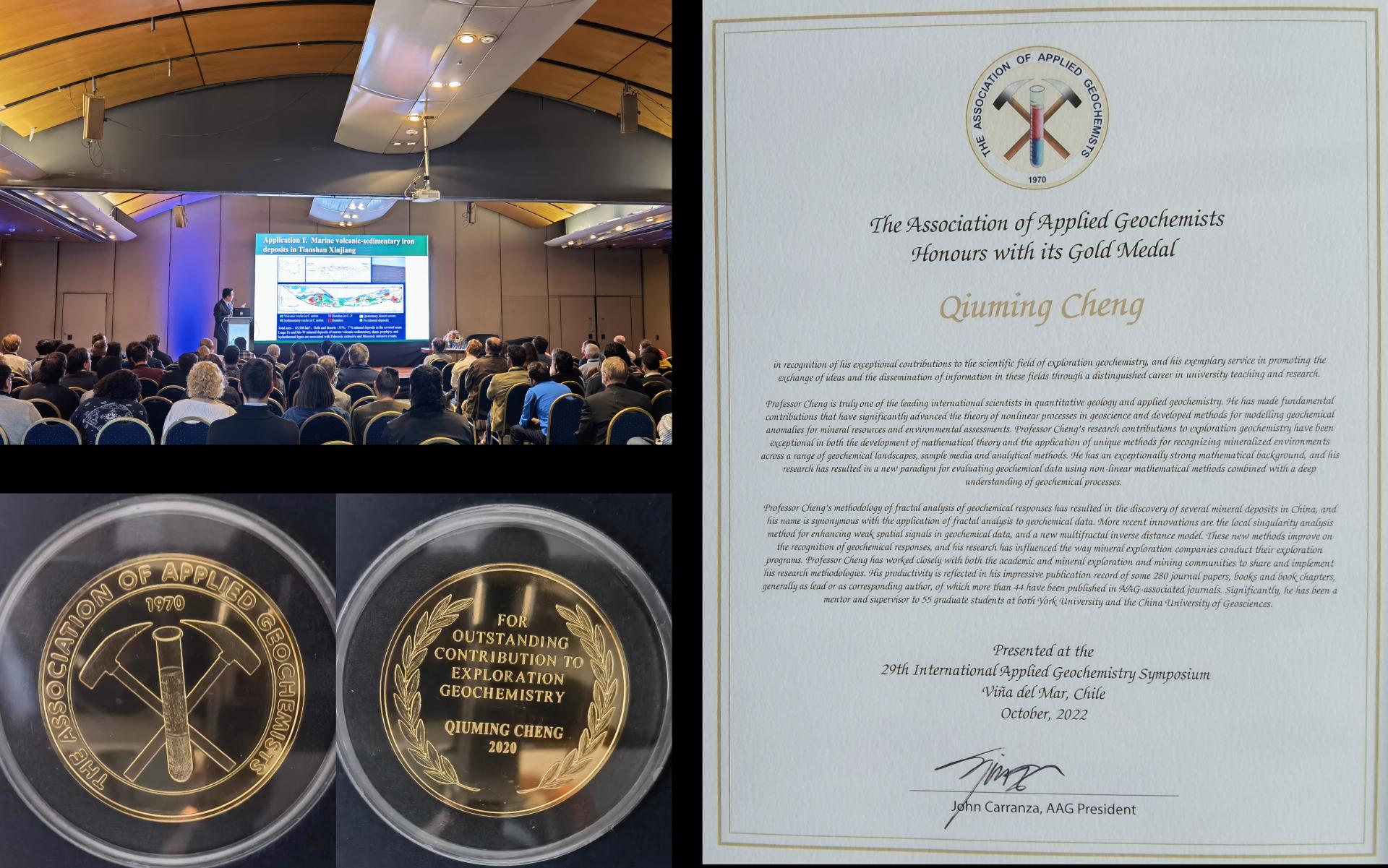 10月28日,在智利比尼亚德尔马举行的第29届国际应用地球化学大会上,中国科学院院士、中国地质大学地质过程与矿产资源国家重点实验室主任、国产精品久久久久久久久久成秋明教授荣获国际应用地球化学协会最高奖—AAG金奖(AAG Gold Medal)。