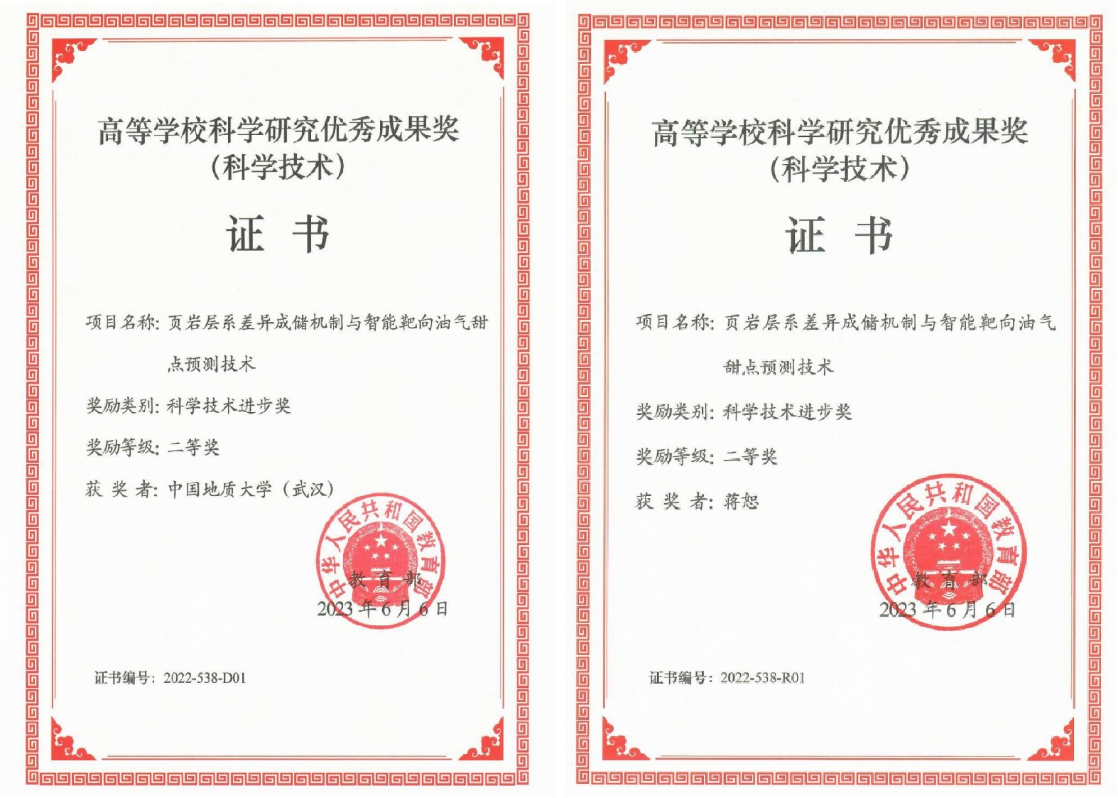 近日,教育部颁发2022年度高等学校科学研究优秀成果奖(科学技术)获奖证书,我院蒋恕教授牵头完成的“页岩层系差异成储机制与智能靶向油气甜点预测技术”项目获科技进步二等奖。该项目针对我国油气对外依存度高、页岩层系地质复杂、储层非均质性强和甜点预测难的瓶颈,经产学研项目多年协同攻关,形成了“页岩层系差异成储机制与智能靶向油气甜点预测技术”系列科研成果:建立了多圈层协同控制下的页岩层系岩相动态演化发育模式,揭示了不同页岩的差异成储机理;构建了递进式高精度优势岩相定位与全尺度孔缝表征方法;开发出智能靶向油气甜点预测技术;突破了国外甜点预测技术不适用于中国复杂页岩层系的技术难关,同时促进了人工智能在地学和能源资源战略领域的应用。成果已在多个油气田成功应用,经济社会效益显著。