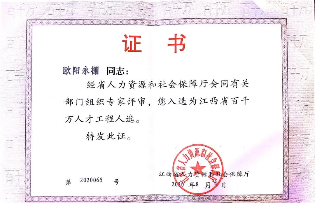 欧阳永棚,男,汉族,1988年5月生,江西吉安人,中共党员,高级工程师。2006年考入中国地质大学(武汉)资源勘查工程(基地班);2010年保送中国地质大学(武汉)矿产普查勘探专业攻读硕士;2013年进入江西省地矿局九一二大队工作,现为大队副总工程师兼自然资源调查院院长,江西省百千万人才工程人选,江西省地质学会理事,江西省青年讲师团成员,核心期刊《中国钨业》中青年编委,鹰潭市第六届青联常委及科学技术和教育界别组主任。