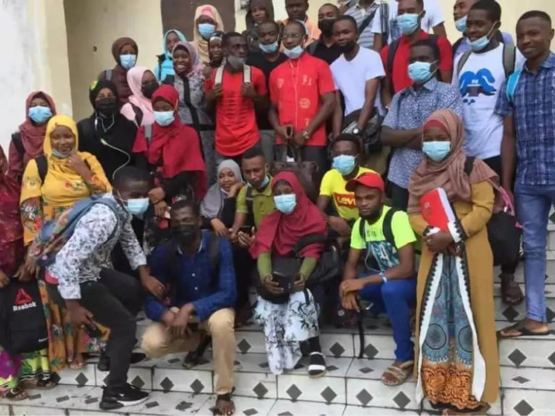阿拉丁(二排右五穿红色唐装)与其教授的科摩罗大学学生